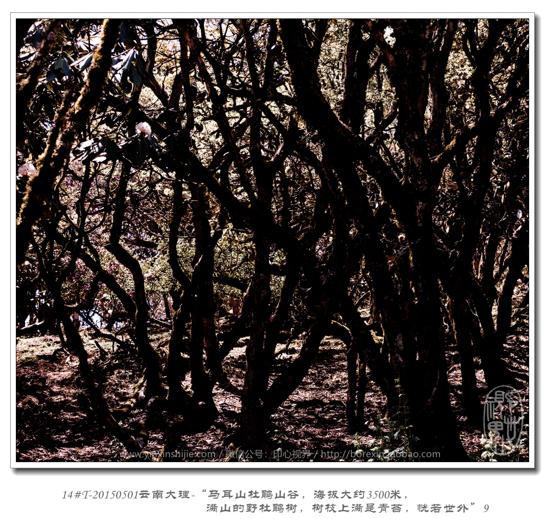满山的野杜鹃树,树枝上满是青苔,恍若世外”2