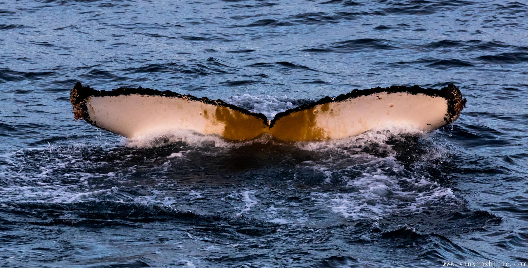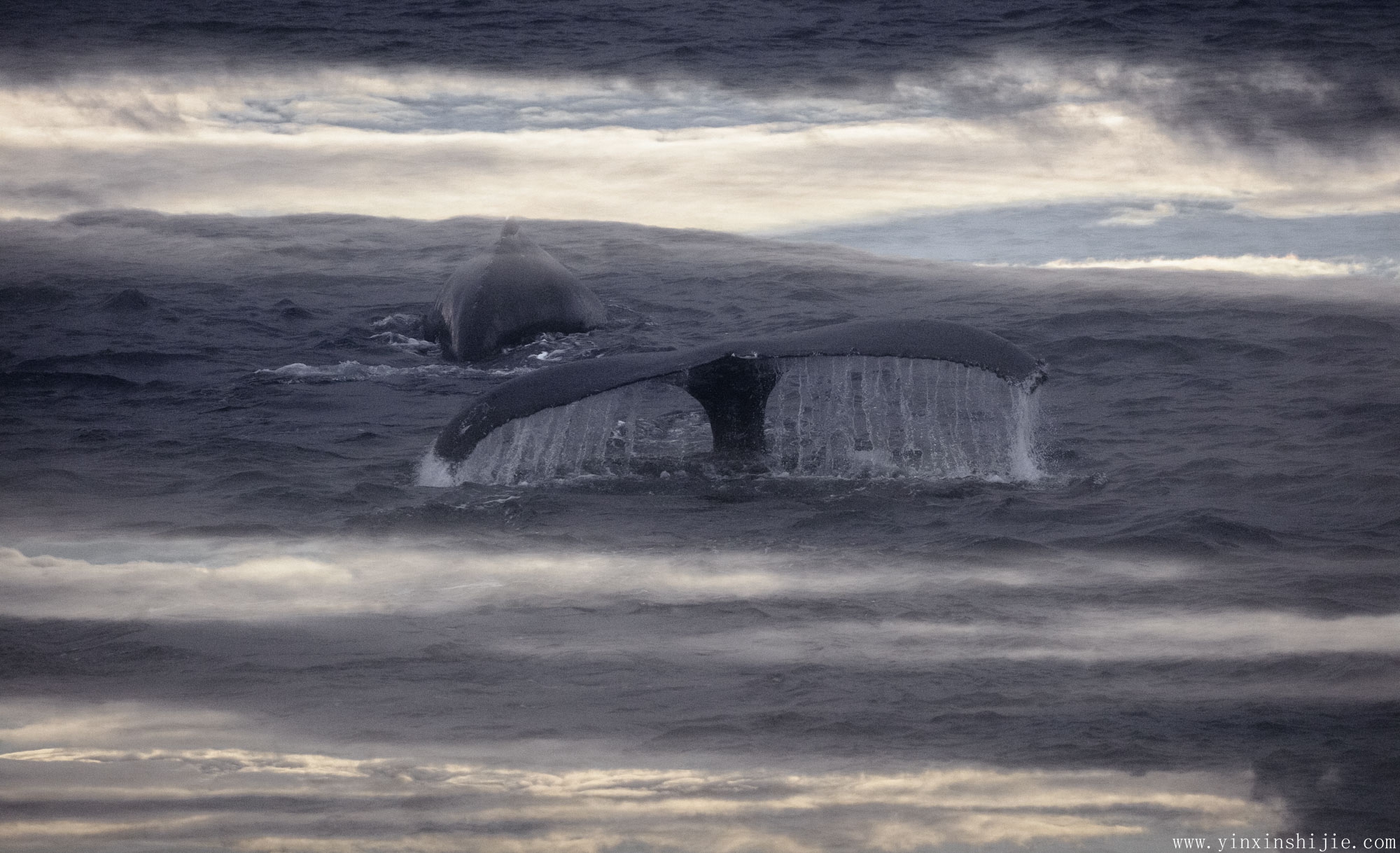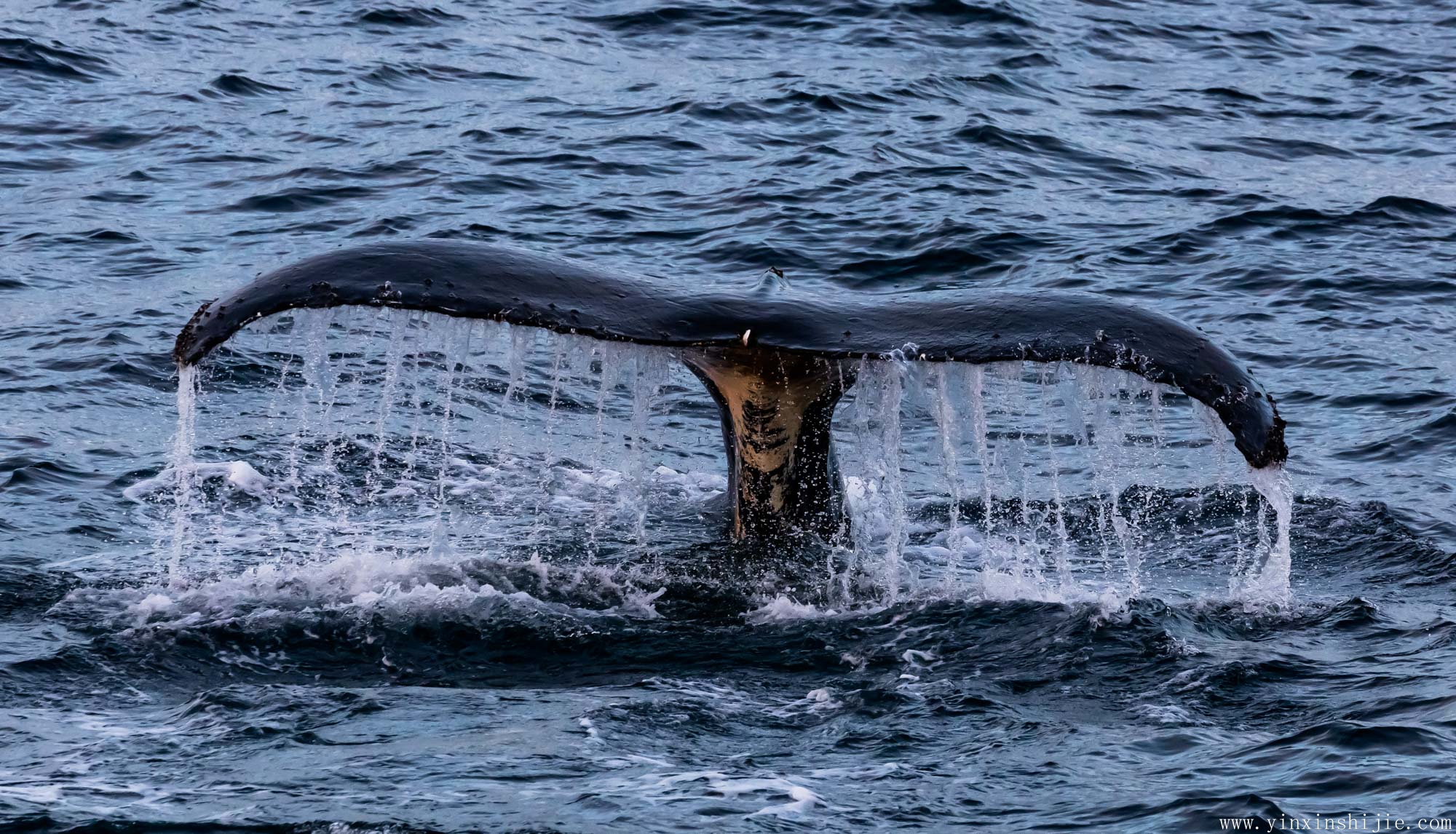 最漂亮的是座头鲸探头之后,一个纵身,巨大的脊背划将过去,“丫”字型的巨大尾巴划开海面,带起一片淌着串串珍珠般的水帘!这才是海阔凭鱼跃啊!