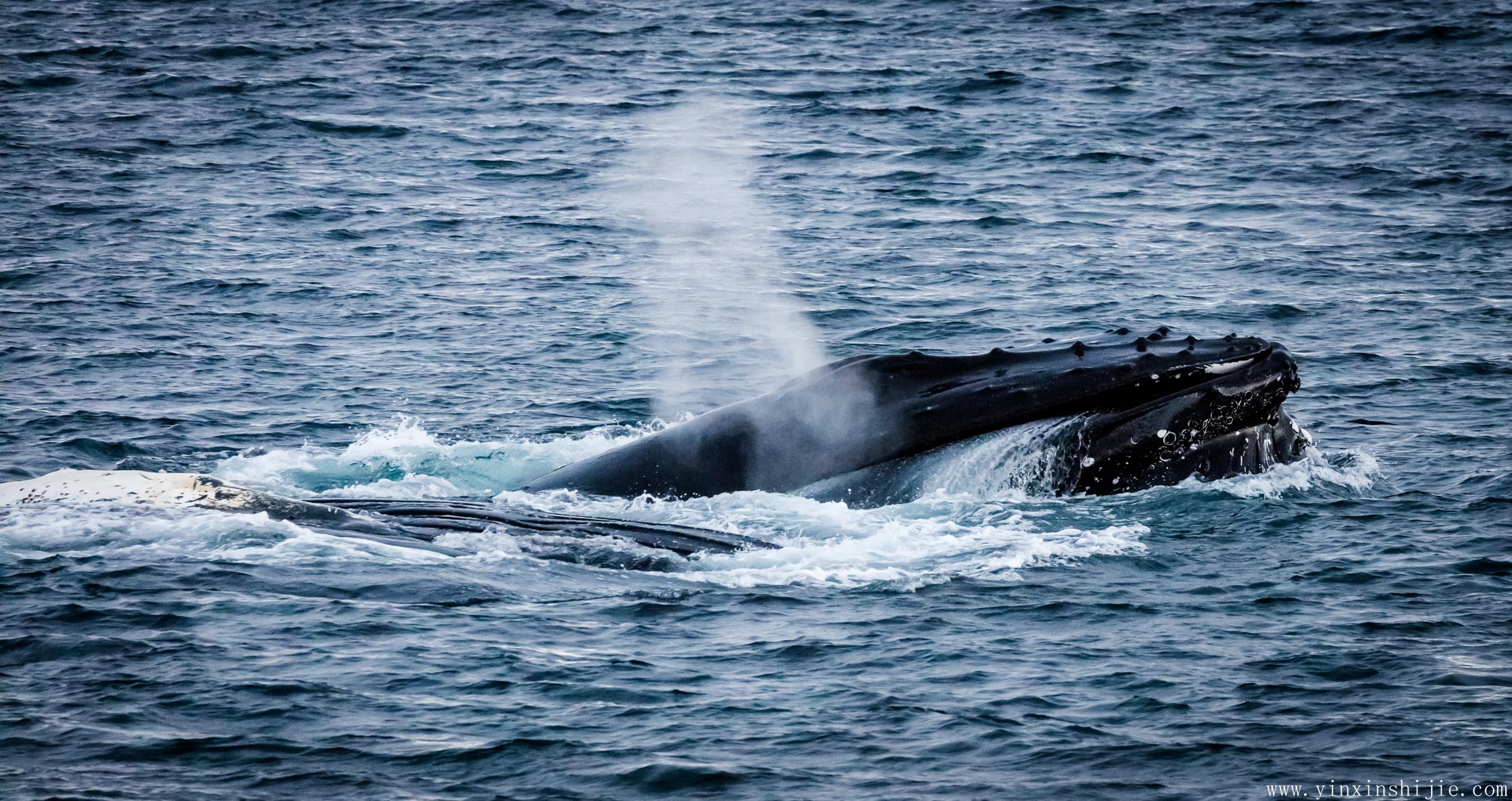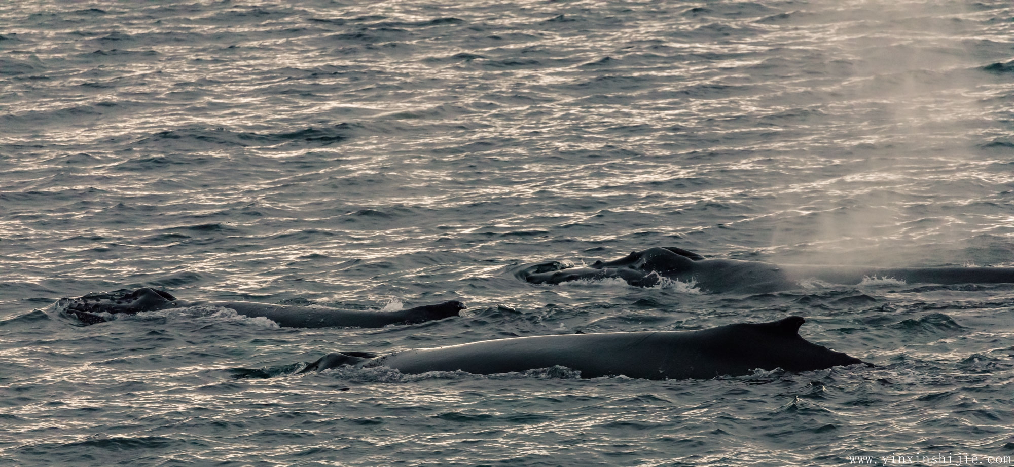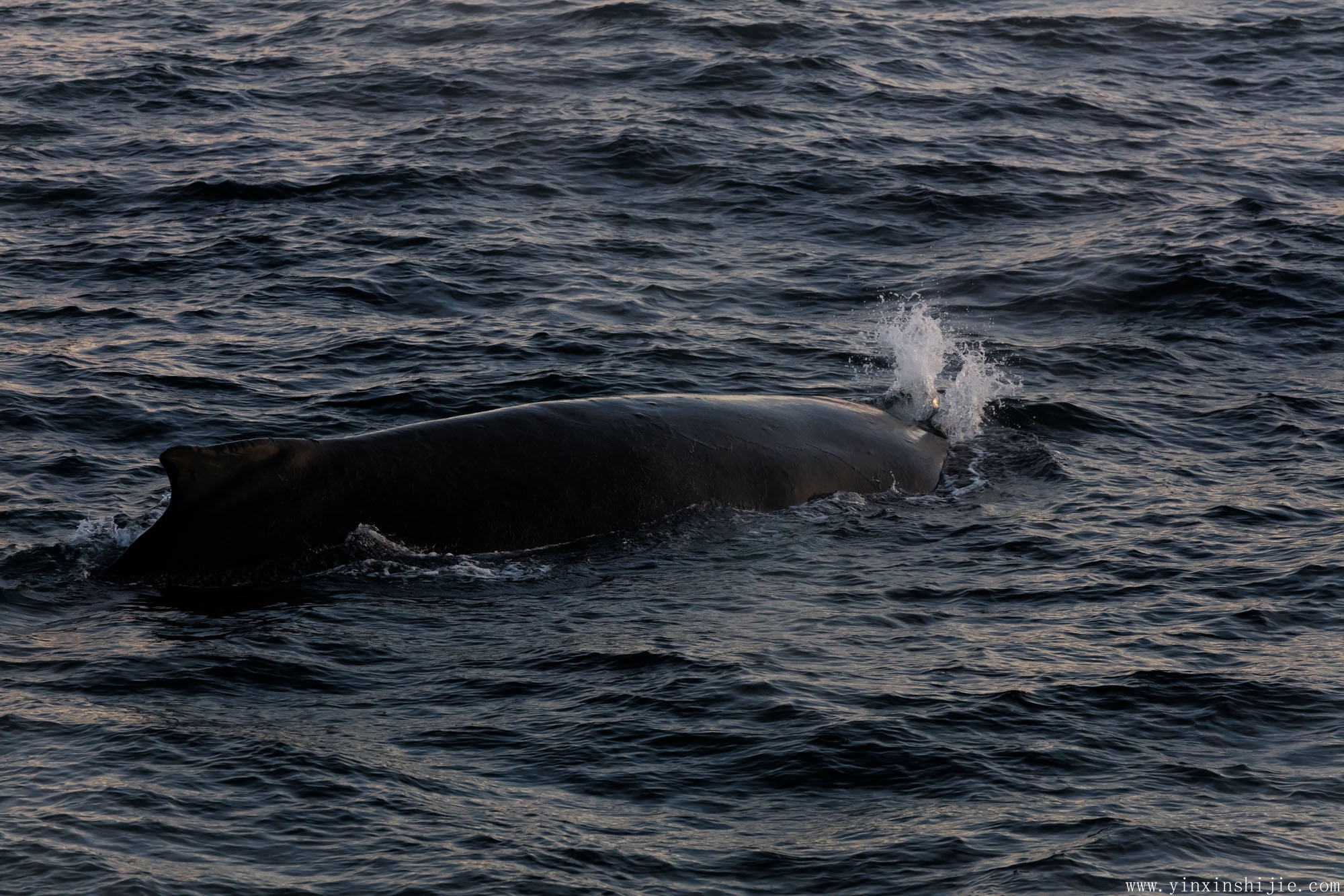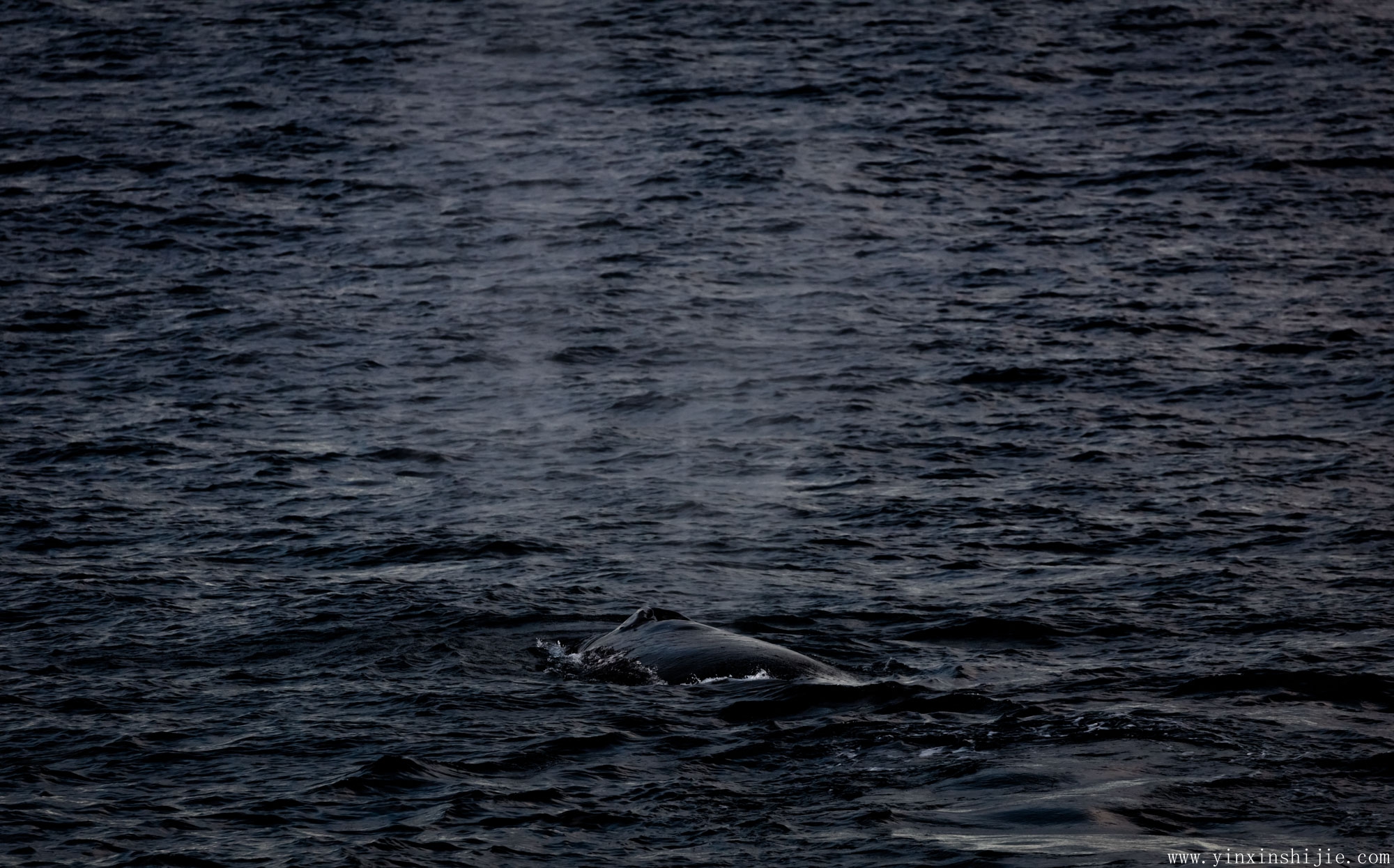 有时候会看到蓝鲸、座头鲸,单独游出水面,或者时而嬉戏,更幸运的是看到了一个鲸鱼家族同时在海面游弋嬉戏。
